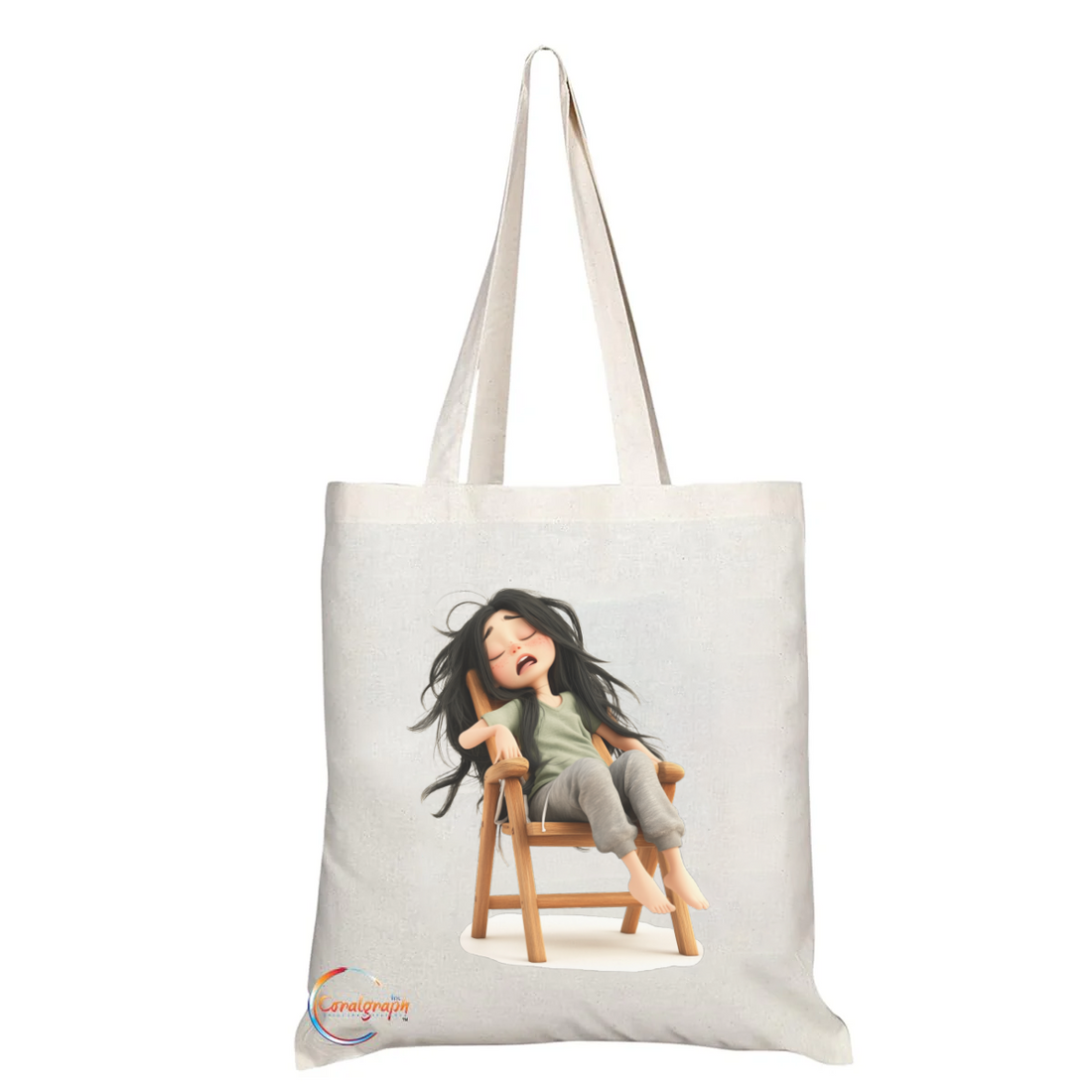 Funny Lazy Girl on Chair Eco Tote Bag with Ethically Printed Durable Fabric, Handmade in the UK – Reusable, Comfortable, Stylish and Functional – TB2231