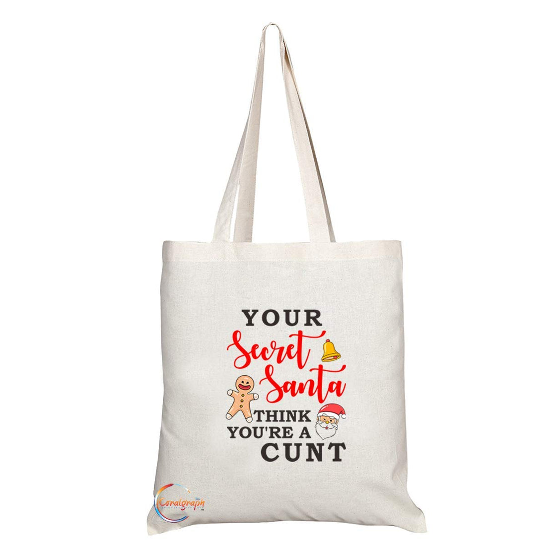 TB600 YOUR Secret Santa THINK YOU’RE A C**T Novelty Present Gift Printed Eco-Friendly Stylish Long Handled Tote Shoulder Bag