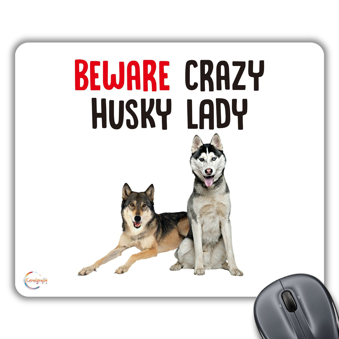 CP556 Beware Crazy Husky Lady Novelty Gift Printed PC Laptop Computer Mouse Mat Pad
