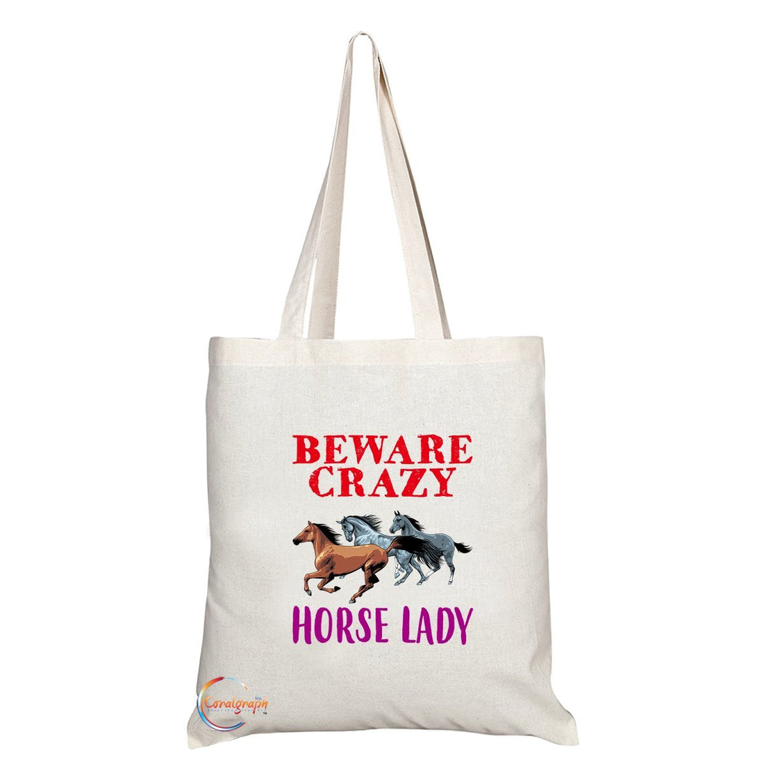 TB257 Beware Crazy Horse Lady (3 Horses) Novelty Present Gift Printed Eco-Friendly Stylish Long Handled Tote Shoulder Bag