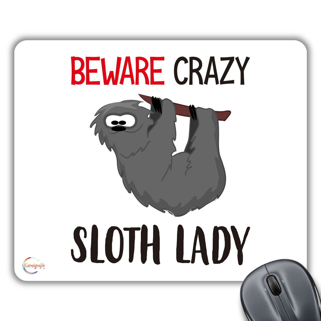 CP516 Beware Crazy Sloth Lady Novelty Gift Printed PC Laptop Computer Mouse Mat Pad