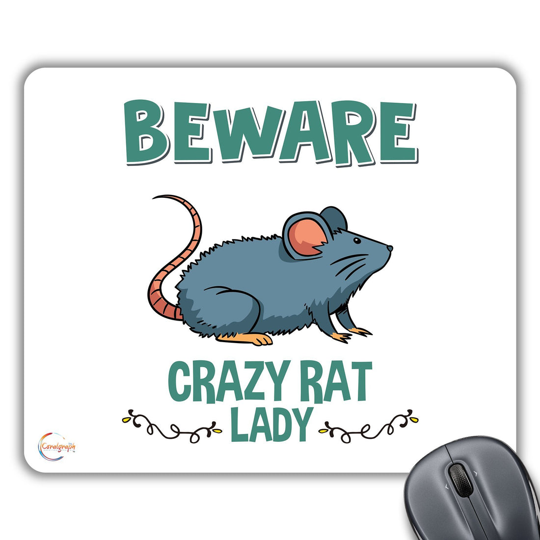 CP528 Beware Crazy Rat Lady Novelty Gift Printed PC Laptop Computer Mouse Mat Pad