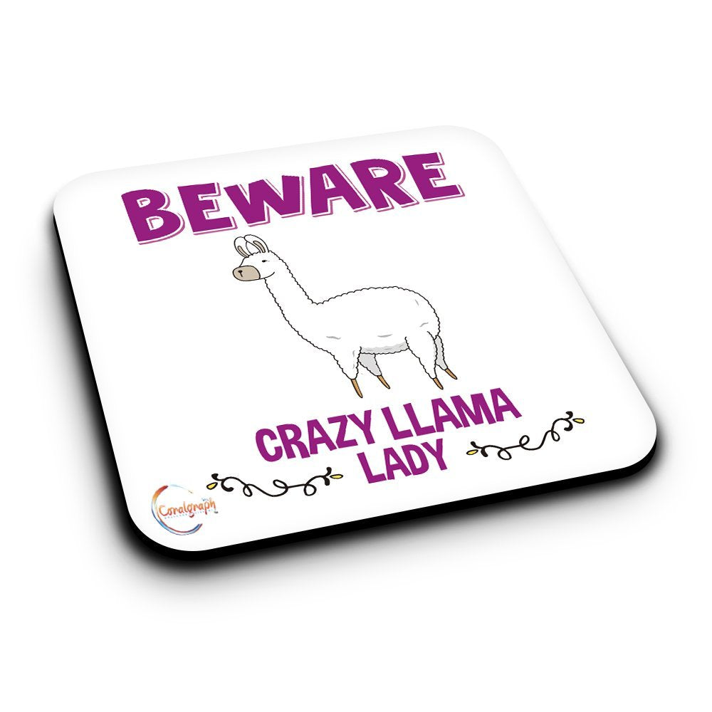 ER450 Beware Crazy Llama Lady Novelty Present Gift Printed MDF Wooden Coaster