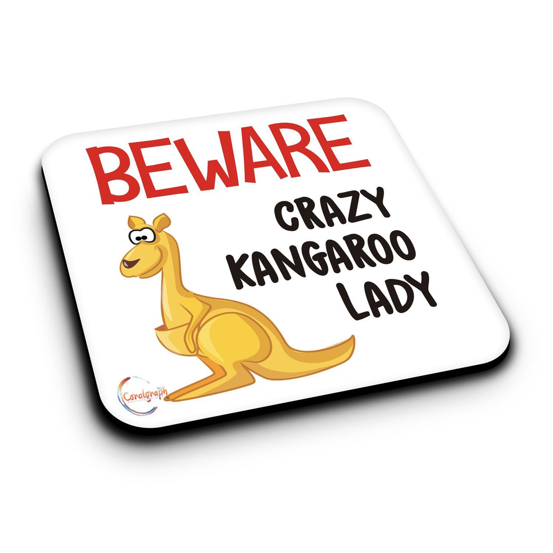ER454 Beware Crazy Kangaroo Lady Novelty Present Gift Printed MDF Wooden Coaster