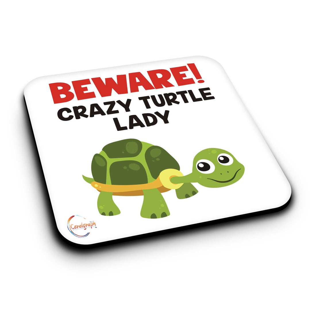 ER406 Beware! Crazy Turtle Lady Novelty Present Gift Printed MDF Wooden Coaster