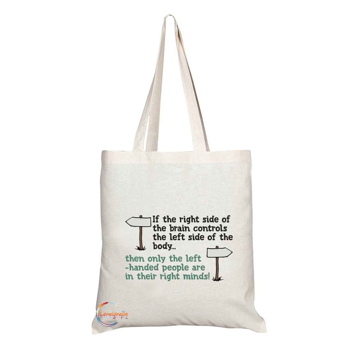 TB153 WHEN LEFT HANDED PEOPLE ON THEIR RIGHT MINDS! Novelty Present Gift Printed Eco-Friendly Stylish Long Handled Tote Shoulder Bag