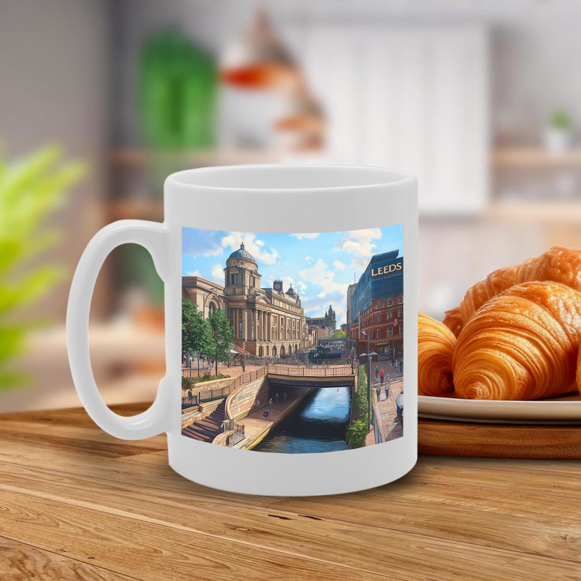 Celebrate your unique style or sense of humor with the 'Printed Coffee Ceramic Featuring Cities And Landmarks In United Kingdom (Leeds)' coffee mug. Made from durable ceramic, this 11oz mug is both microwave and dishwasher safe, perfect for daily use at home or in the office. A great gift for birthdays, holidays, or just because!