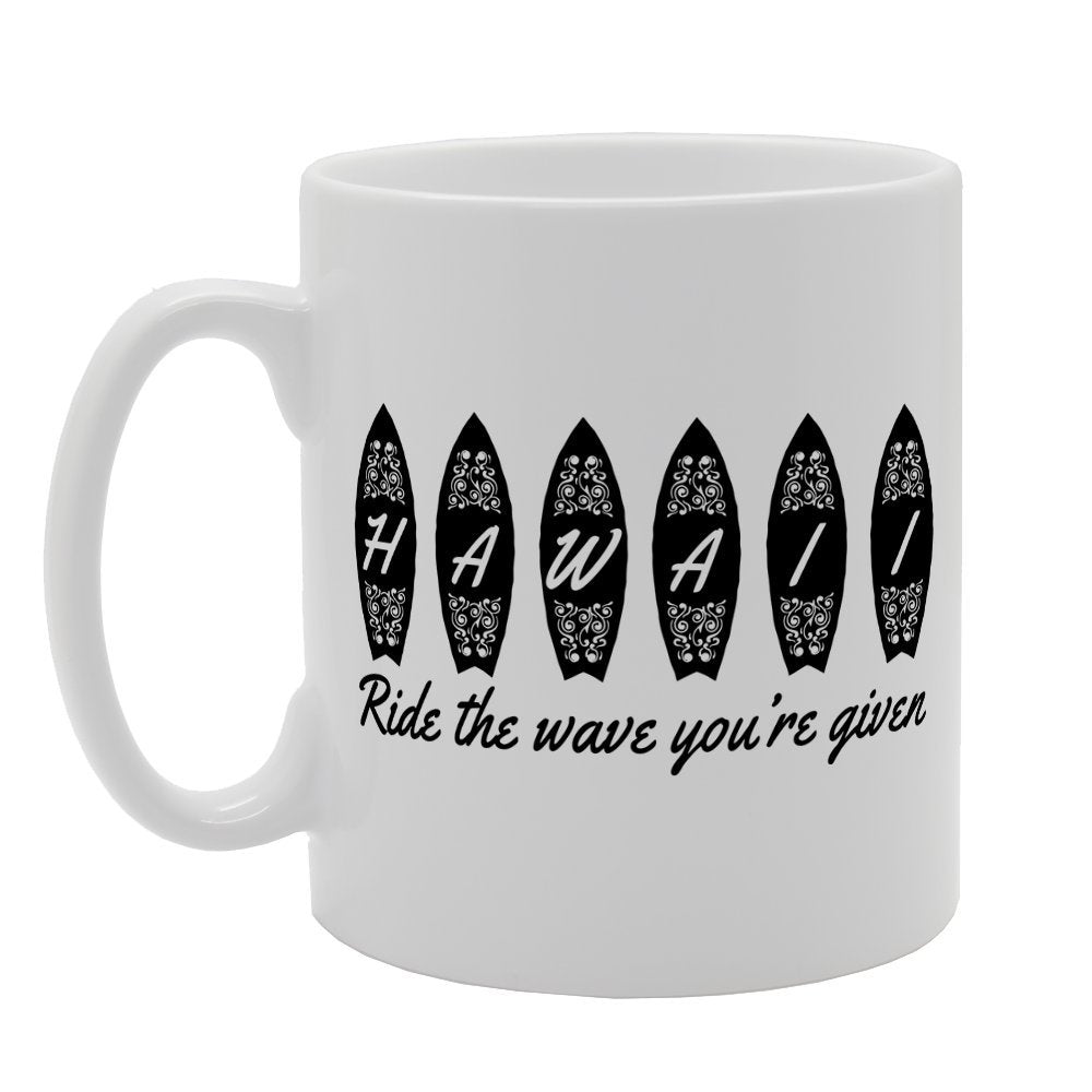 Celebrate your unique style or sense of humor with the 'Hawaii 'Ride The Wave You Are Given' Printed Tea Coffee Ceramic Mg1502' coffee mug. Made from durable ceramic, this 11oz mug is both microwave and dishwasher safe, perfect for daily use at home or in the office. A great gift for birthdays, holidays, or just because!