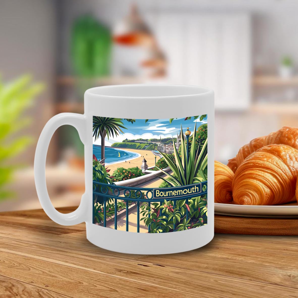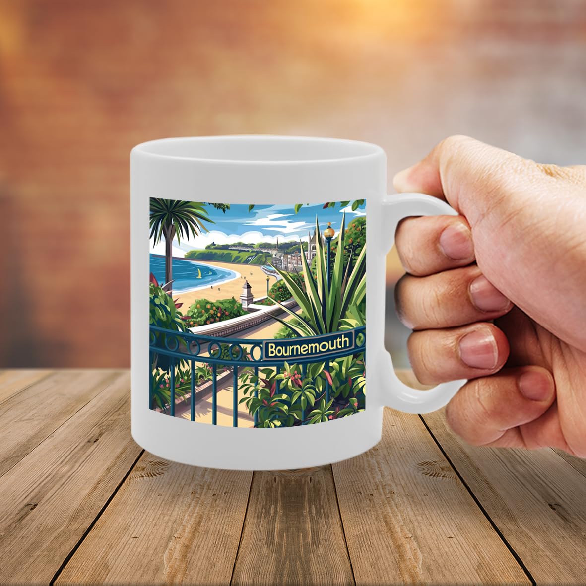 Celebrate your unique style or sense of humor with the 'Printed Coffee Ceramic Featuring Cities And Landmarks In United Kingdom (Bournemouth)' coffee mug. Made from durable ceramic, this 11oz mug is both microwave and dishwasher safe, perfect for daily use at home or in the office. A great gift for birthdays, holidays, or just because!