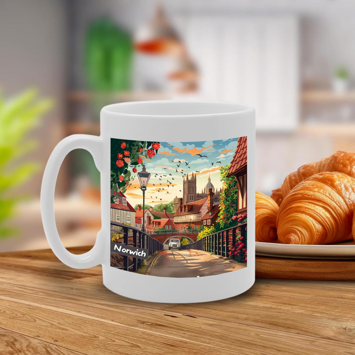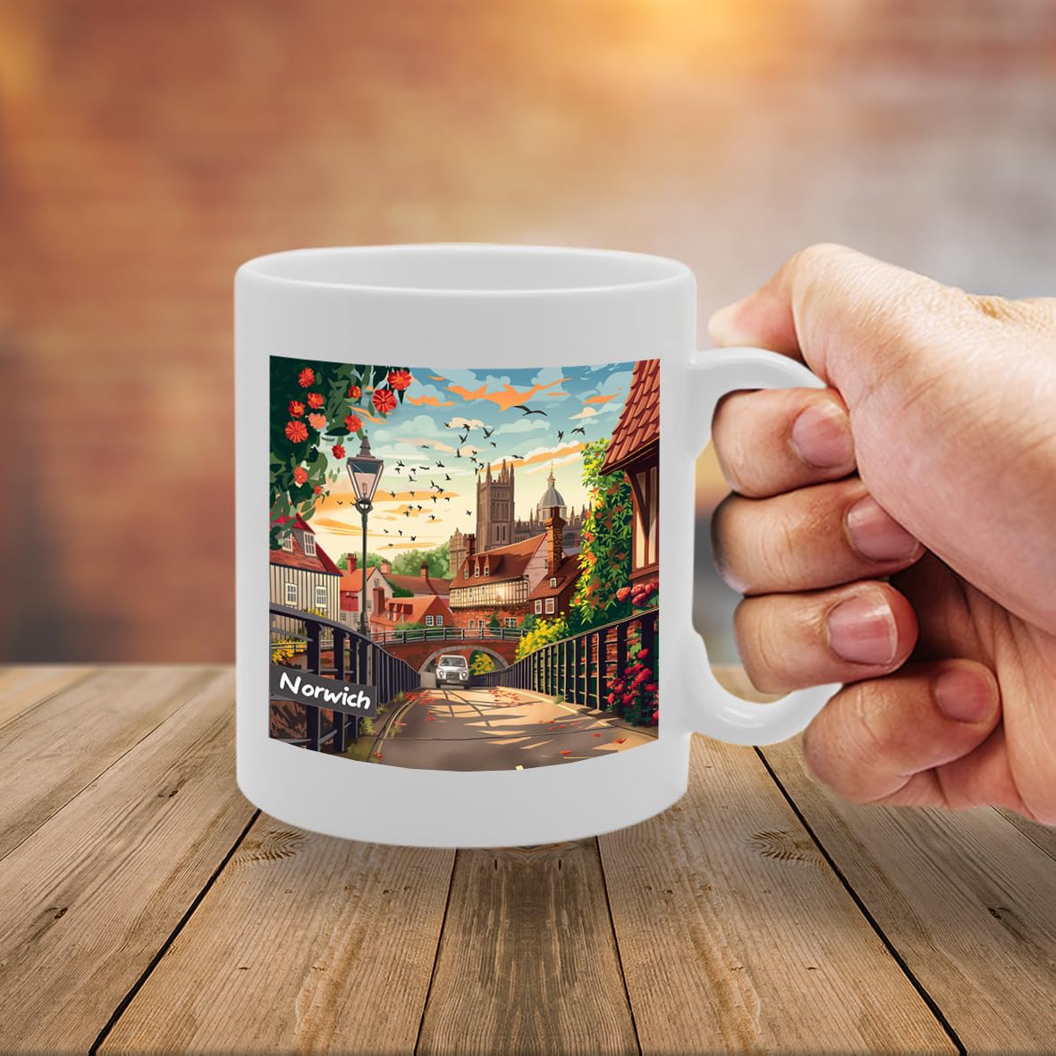 Celebrate your unique style or sense of humor with the 'Printed Coffee Ceramic Featuring Cities And Landmarks In United Kingdom (Norwich)' coffee mug. Made from durable ceramic, this 11oz mug is both microwave and dishwasher safe, perfect for daily use at home or in the office. A great gift for birthdays, holidays, or just because!