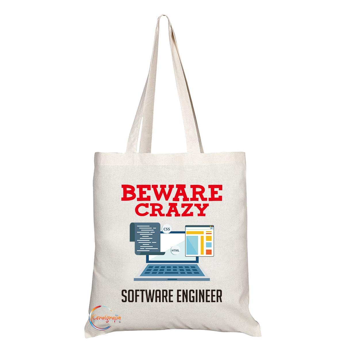 Make a statement with this 'Beware Crazy Software Engineer Novelty Present Gift Printed Stylish Long Handled Tote Shoulder Bag' tote — fun, functional, and perfect for everyday gifting. Crafted from a durable poly-cotton blend with long handles, it folds neatly into your bag and holds all your daily essentials. Printed with lasting, vibrant designs