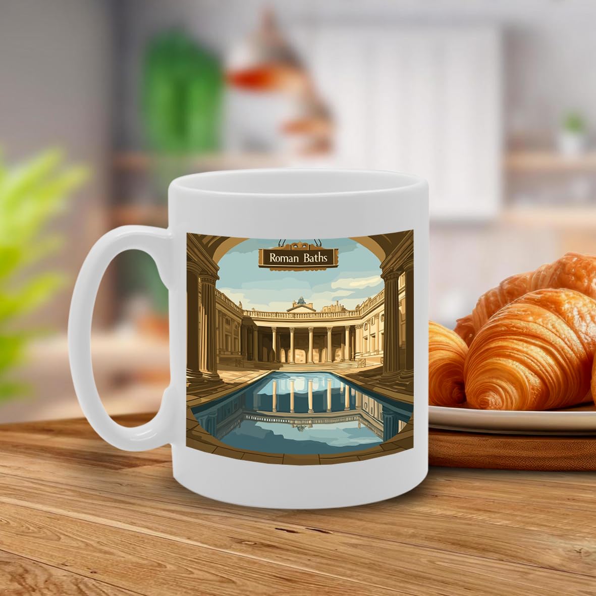 Celebrate your unique style or sense of humor with the 'Printed Coffee Ceramic Featuring Cities And Landmarks In United Kingdom (Bath Roman Baths)' coffee mug. Made from durable ceramic, this 11oz mug is both microwave and dishwasher safe, perfect for daily use at home or in the office. A great gift for birthdays, holidays, or just because!