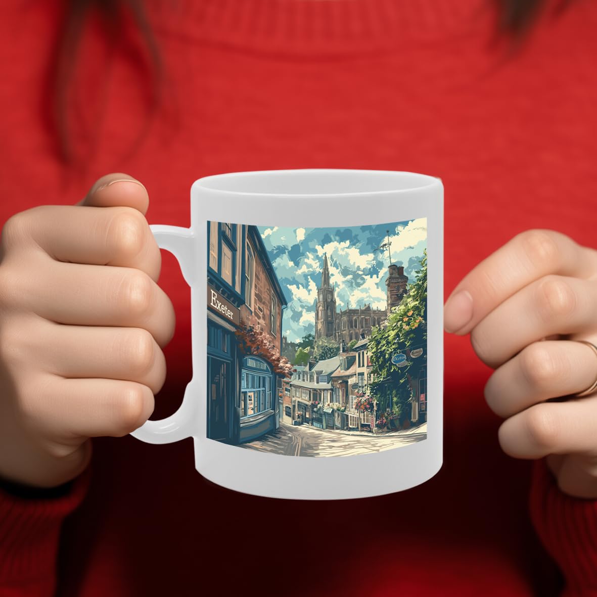 Printed Coffee Ceramic  Featuring Cities And Landmarks In United Kingdom (Exeter) - Funny Printed Coffee Mug - Great Gift Idea