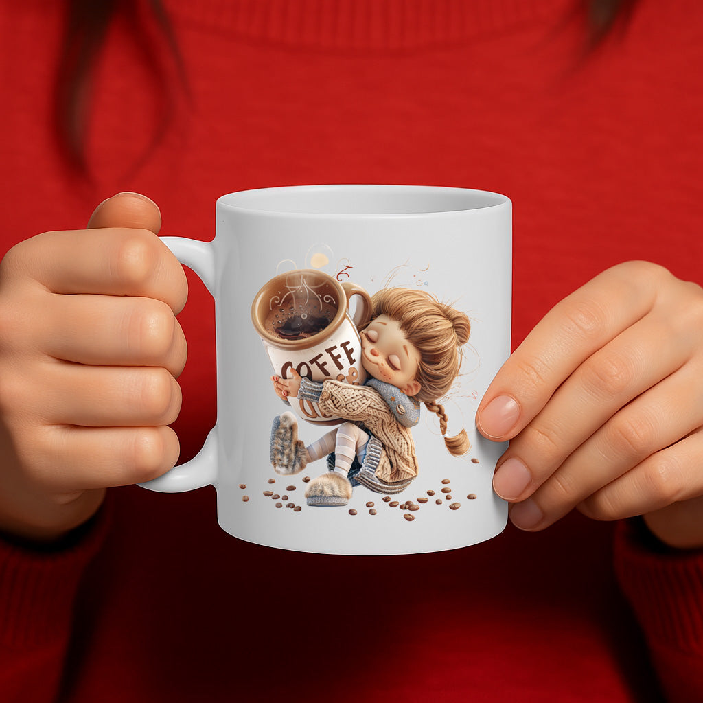Start your day wrapped in warmth and comfort with our “Cozy Coffee Hug” mug, featuring an irresistibly cute girl snuggled up with a giant steaming cup of coffee. This whimsical design is perfect for coffee lovers who treat their morning brew like a comforting friend. Crafted from durable ceramic and standing approximately 9.5 cm tall with an 8.0 cm diameter, this 325 ml (11 oz) mug is ideal for your favorite coffee, tea, or hot chocolate. With a large C-handle for easy gripping, it’s dishwasher-proof and microwave-safe, making your daily routine more delightful and hassle-free. Whether as a gift or a personal treat, it’s the cozy touch every caffeine addict needs.