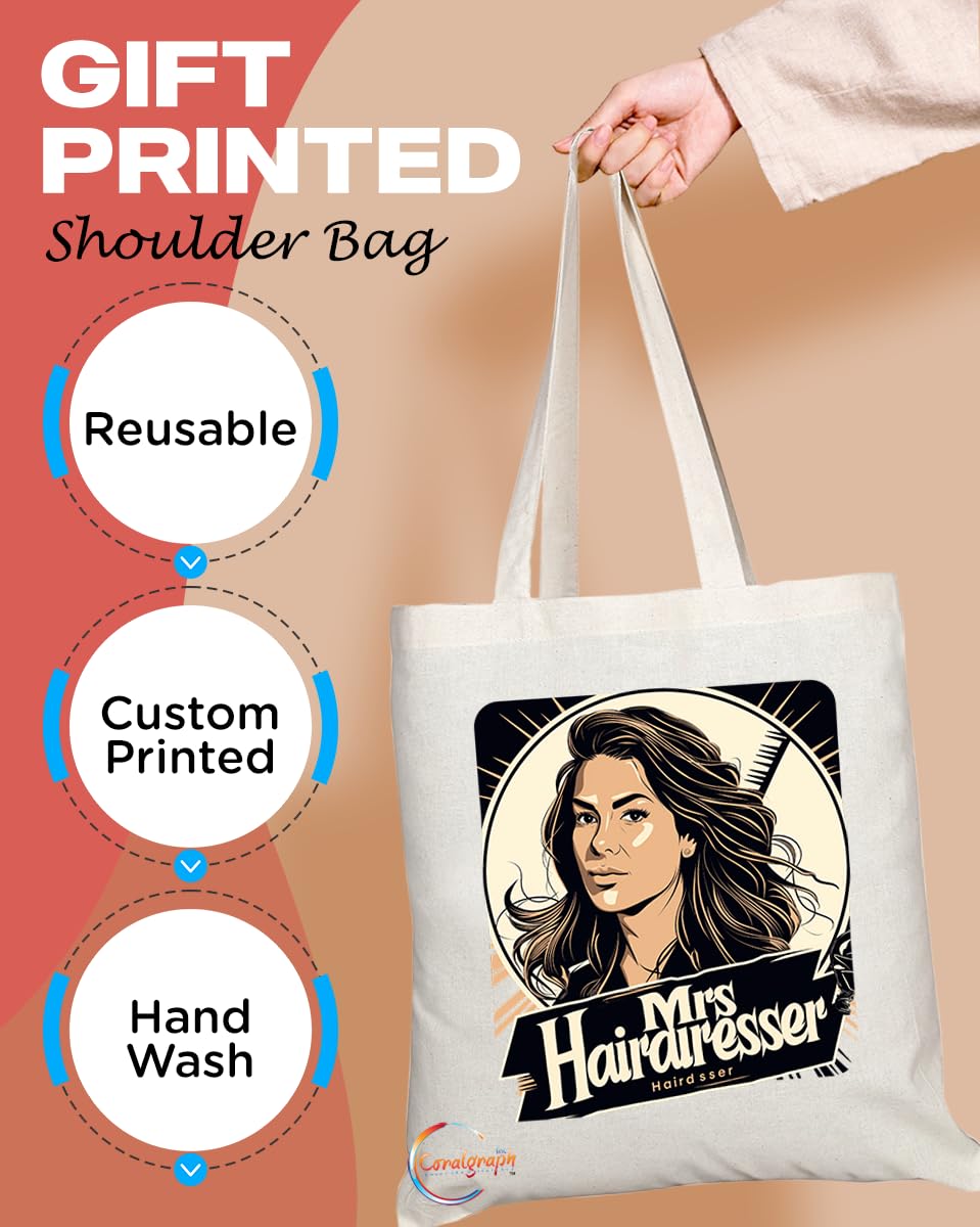 Make a statement with this 'Mrs Hairdresser Tote Bag - Great for Hairdressers, Stylists, Salon Professionals - Sustainable, Stylish, Long Handled, Durable and Reusable' tote — fun, functional, and perfect for everyday gifting. Crafted from a durable poly-cotton blend with long handles, it folds neatly into your bag and holds all your daily essentials. Printed with lasting, vibrant designs