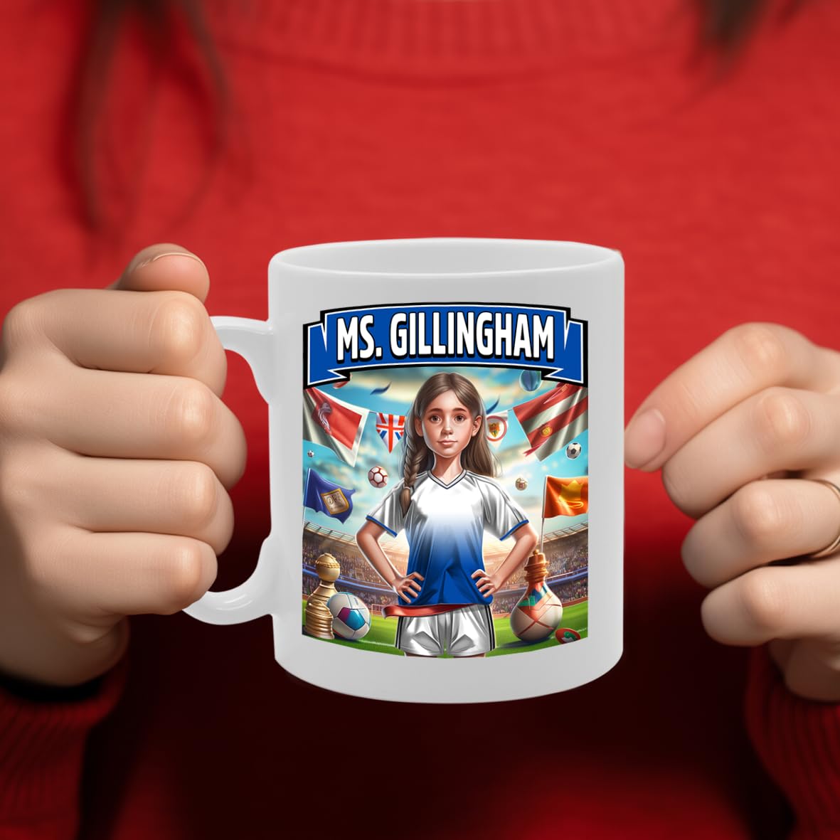Celebrate your unique style or sense of humor with the 'Ms Gillingham Printed Tea Coffee Ceramic For Footie Fan Ladies Girls Mg6384' coffee mug. Made from durable ceramic, this 11oz mug is both microwave and dishwasher safe, perfect for daily use at home or in the office. A great gift for birthdays, holidays, or just because!